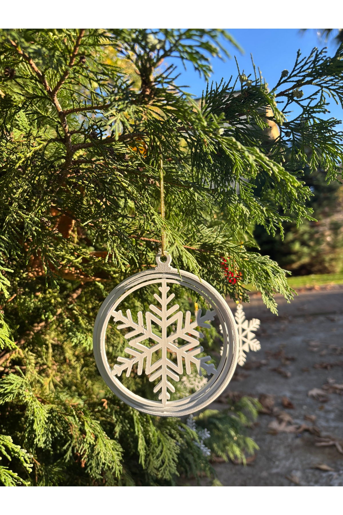 ❄️ Döner Halka Kar Tanesi Yılbaşı Ağaç Süsü – 1 Adet Yeni yıl dekorasyonunuza zarif ve modern bir dokunuş katmak için tasarlanan döner halka kar tanesi süsleri, hem şık kar tanesi formu hem de dönen halka yapısıyla ağacınıza masalsı bir hareket ve ışık oyunları katar.; Sade ama etkileyici tasarımı sayesinde klasik, modern ve minimalist tüm yılbaşı temalarıyla mükemmel uyum sağlar.; Hafif yapıları sayesinde dalları yormaz; kolayca asılıp çıkarılabilir.; İç ve dış mekânda güvenle kullanılabilir.; Yılbaşı ağacının yanı sıra çelenk, kapı süsü, masa ve pencere dekorasyonlarında da estetik bir tamamlayıcı olarak tercih edilebilir.; Set içeriği: 1 adet döner halka kar tanesi süsünden oluşmaktadır.; Aynı temadaki bu tasarımlar, dekorasyonunuza bütünlüklü ve dengeli bir görünüm kazandırır.; Yeni yıl atmosferini evinize zarafet ve hareketle taşımak veya sevdiklerinize şık bir yılbaşı hediyesi sunmak için ideal bir seçimdir.